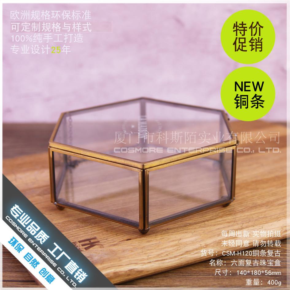 DG-159 Hộp trang sức đồ cổ điển 6 mặt, hộp kính hoa phòng làm đẹp, hộp giữ chống bụi có nắp gập