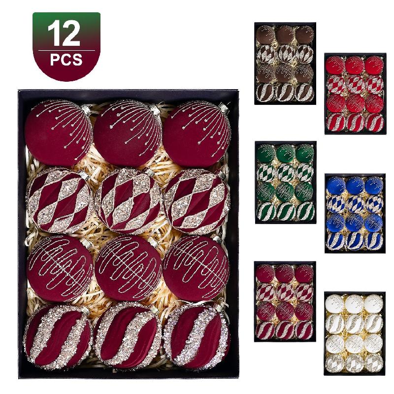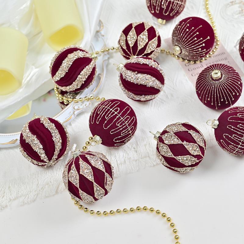 Bóng Noel nhung cao cấp, sơn tay sang trọng, phụ kiện treo cây thông Noel, trang trí lễ hội Giáng Sinh