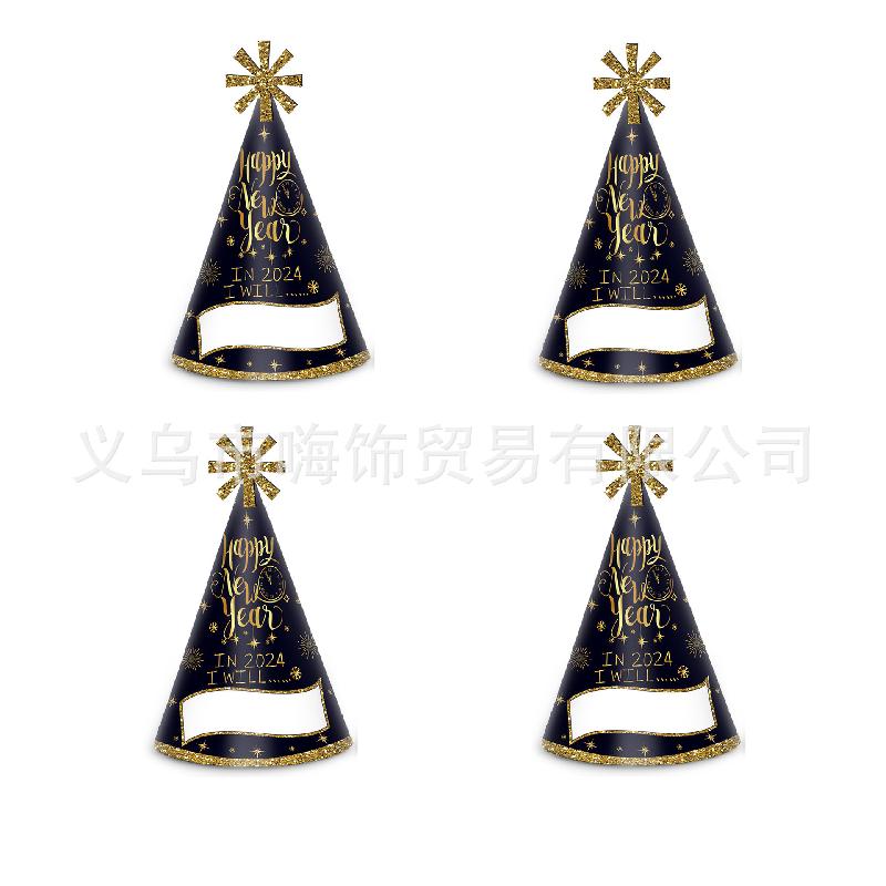 Mũ năm mới 2024 màu đen vàng, trang trí cho trẻ em và người lớn, là phụ kiện chụp ảnh tuyệt vời cho tiệc năm mới.