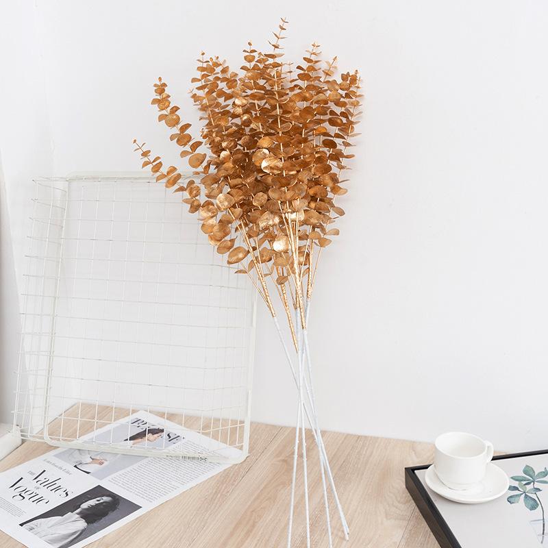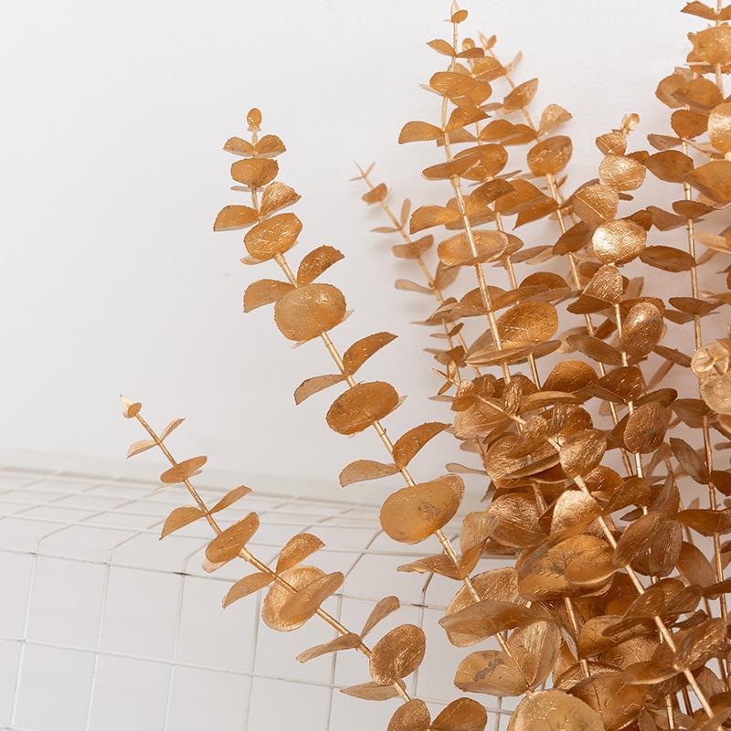 Trang trí đám cưới của bạn với các chi tiết giả màu vàng tinh tế, bao gồm lá eucalyptus giả, cành hoa và chi tiết vàng. Những món đồ trang trí này được làm từ nhựa cao cấp, phủ màu vàng sang trọng, tạo nên sự lấp lánh và quý phái cho lối đi hoặc khu vực trang trí của đám cưới.