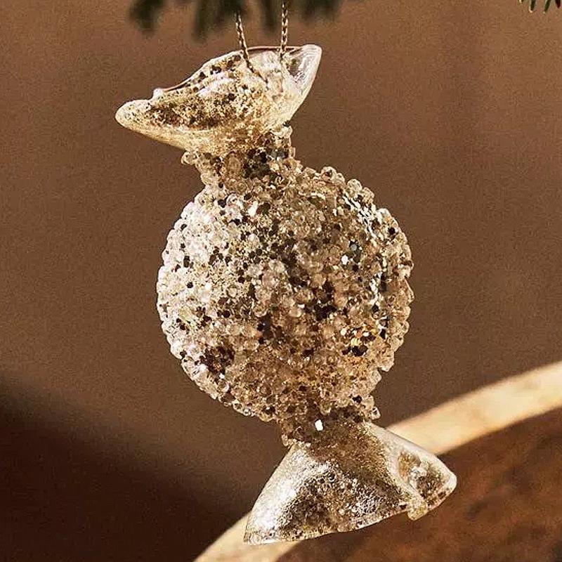 Trang trí Noel vàng champagne, bóng thủy tinh kim tuyến, kẹo, kim cương, phụ kiện sang trọng cây thông Noel